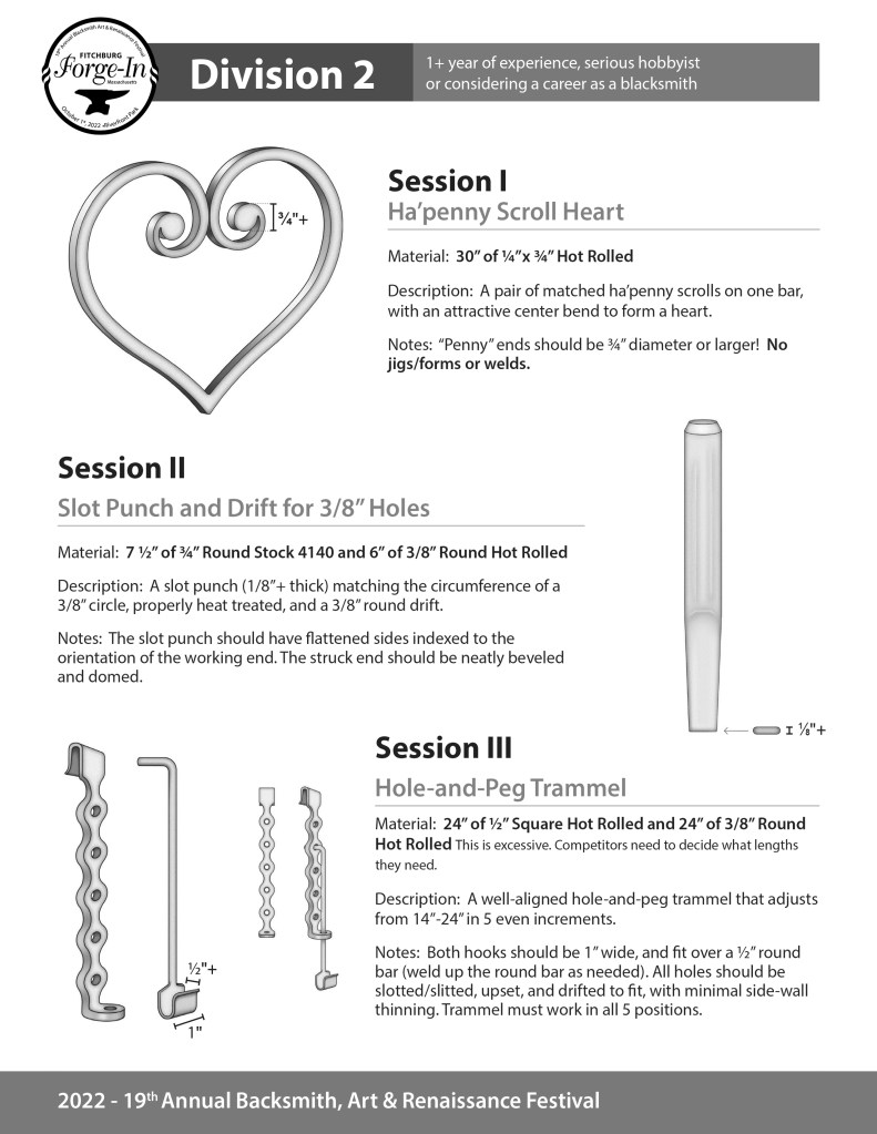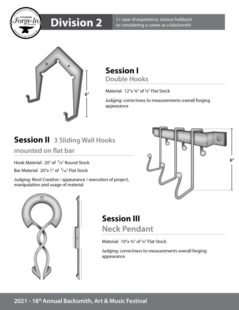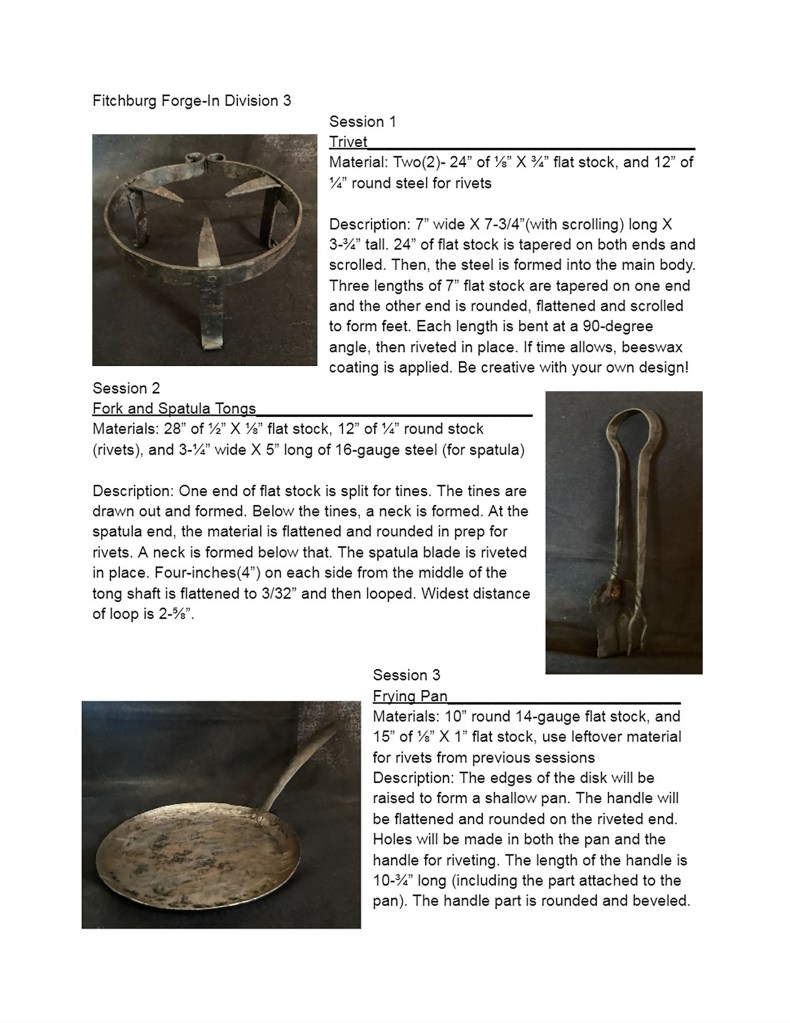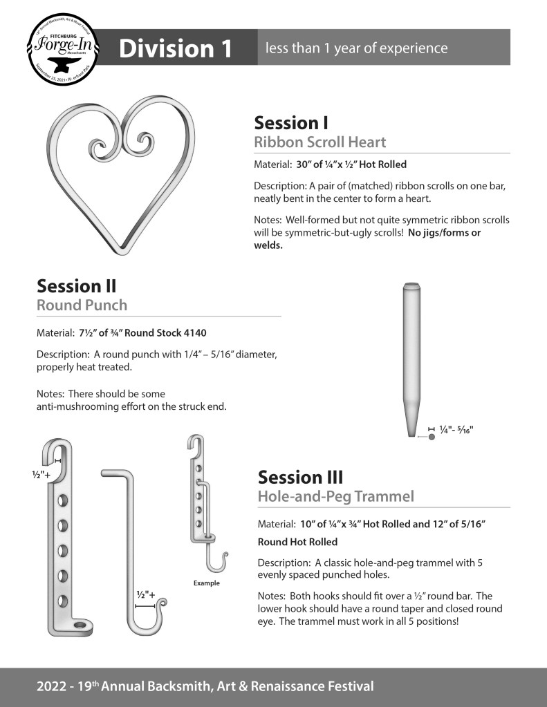 These projects are for the 2025 Fitchburg Forge-In Blacksmith Festival competition. Each PDF is marked with a division that signifies the competitors’ experience level.